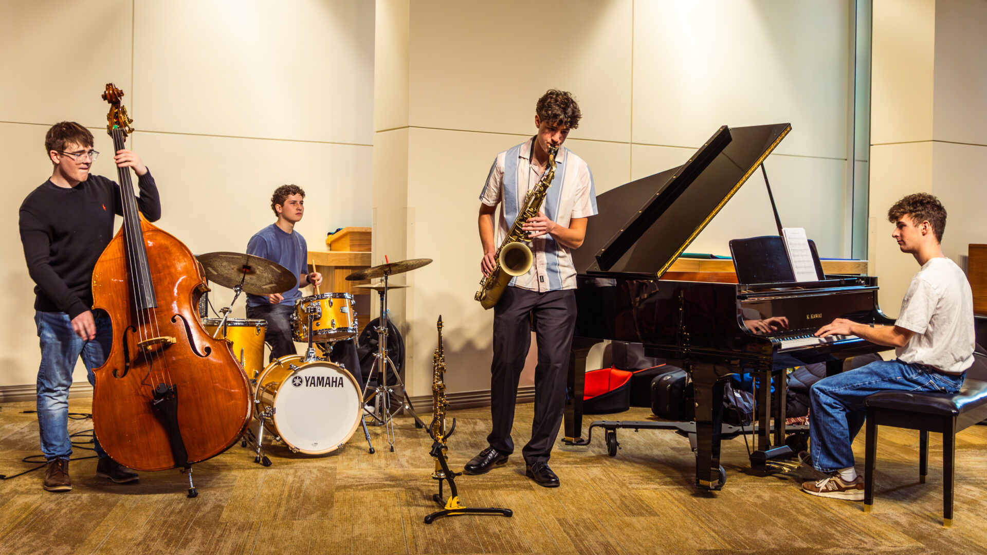 The Neon Quartet started playing together in December, 2025. It consists of Owen Gray (Saxophone), Nick Heffner (Piano), Ethan Steiner (Bass), and Nick Pedigo (Drums).